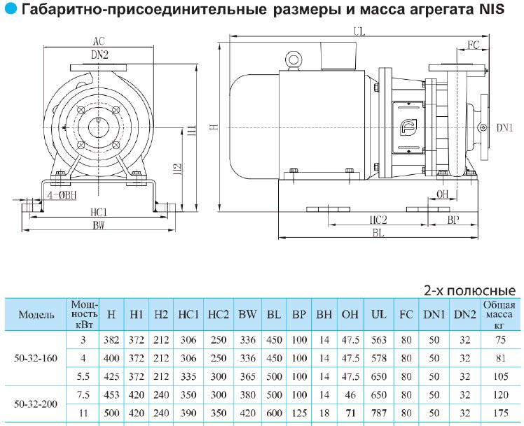 Консольно-моноблочный насос CNP серии NIS 50-32-160-5.5