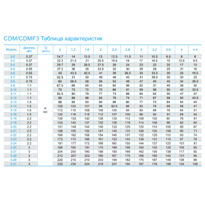 Подача (м³/ч) 3 Напор (м↑) 41 Мощность (кВт) 0.75 Сеть (V) 380/400 В (трехфазный) Ток (А) 1.7 Присоединительные размеры DN 25 КПД (%) 58 Крыльчатка Dia (mm) 82 Класс энергоэффективности IE 3 Количество ступеней 7 Механизм насоса Центробежный, многоступенчатый Погружной поверхностный Поверхностный Материал рабочего колеса Нержавеющая сталь Серия CDM 3 Рабочая температура жидкости °C -15 °С ~ +120 °С Материал корпуса Чугун Температура окружающей среды °C до +40 Качество перекачиваемой жидкости Чистая Рабочее давление (бар) 25 Тип присоединения Фланец Тип насоса Вертикальный многоступенчатый Гарантия 2 года Класс защиты IP55 Оборотов в минуту 2900 Тип оборудования Насос Тип перекачиваемой жидкости Вода, техническая жидкость